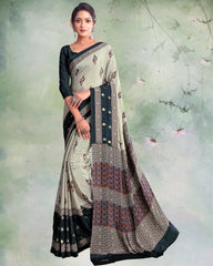 | Saree Color | Creamy Beige And Dark Grey |